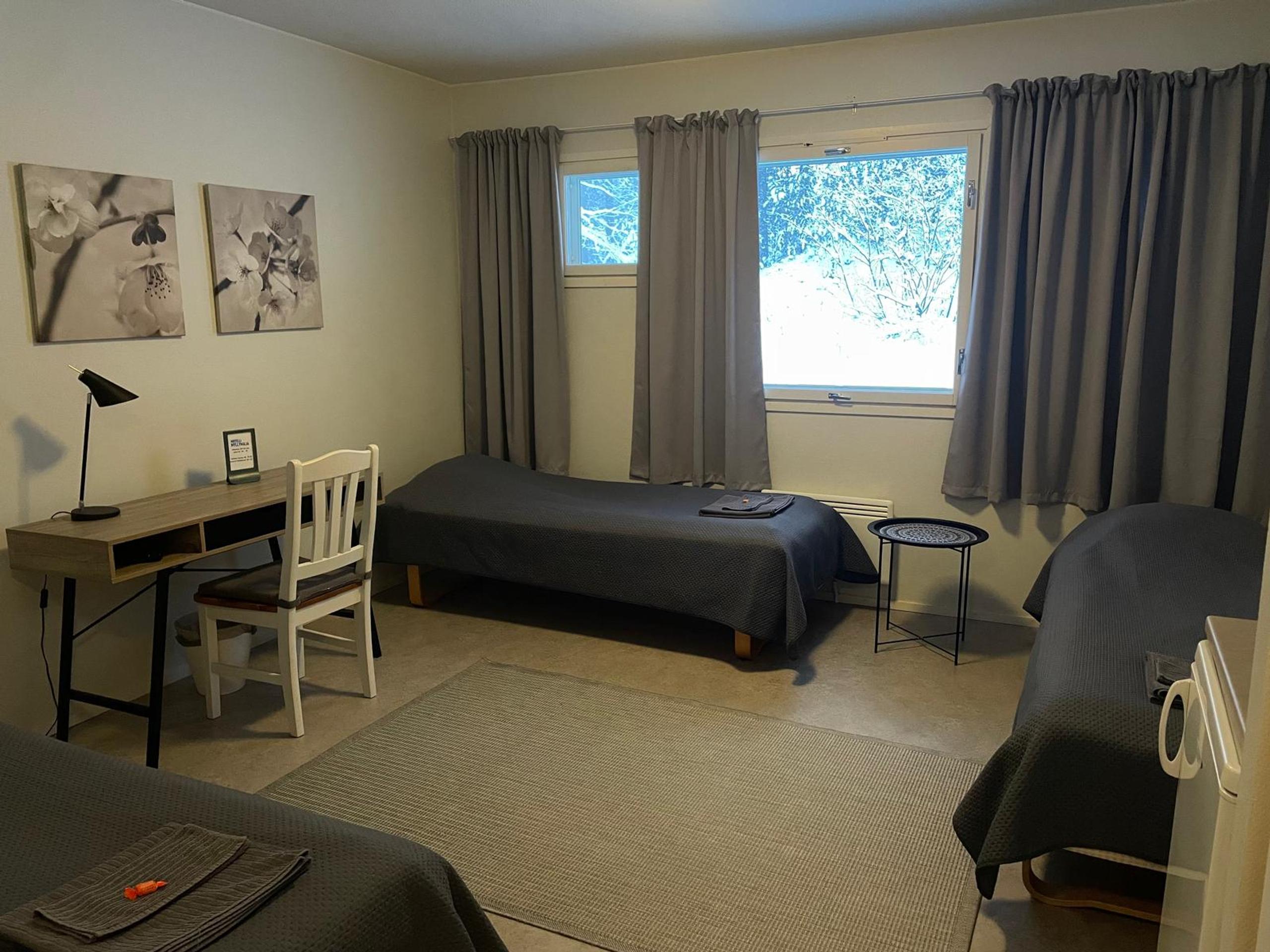 126,00€/vrk 3hh, allergiahuone omalla sisäänkäynnillä, oma wc/suihkutila. Huoneessa 3 erillisvuodetta, kirjoituspöytä, oma...
