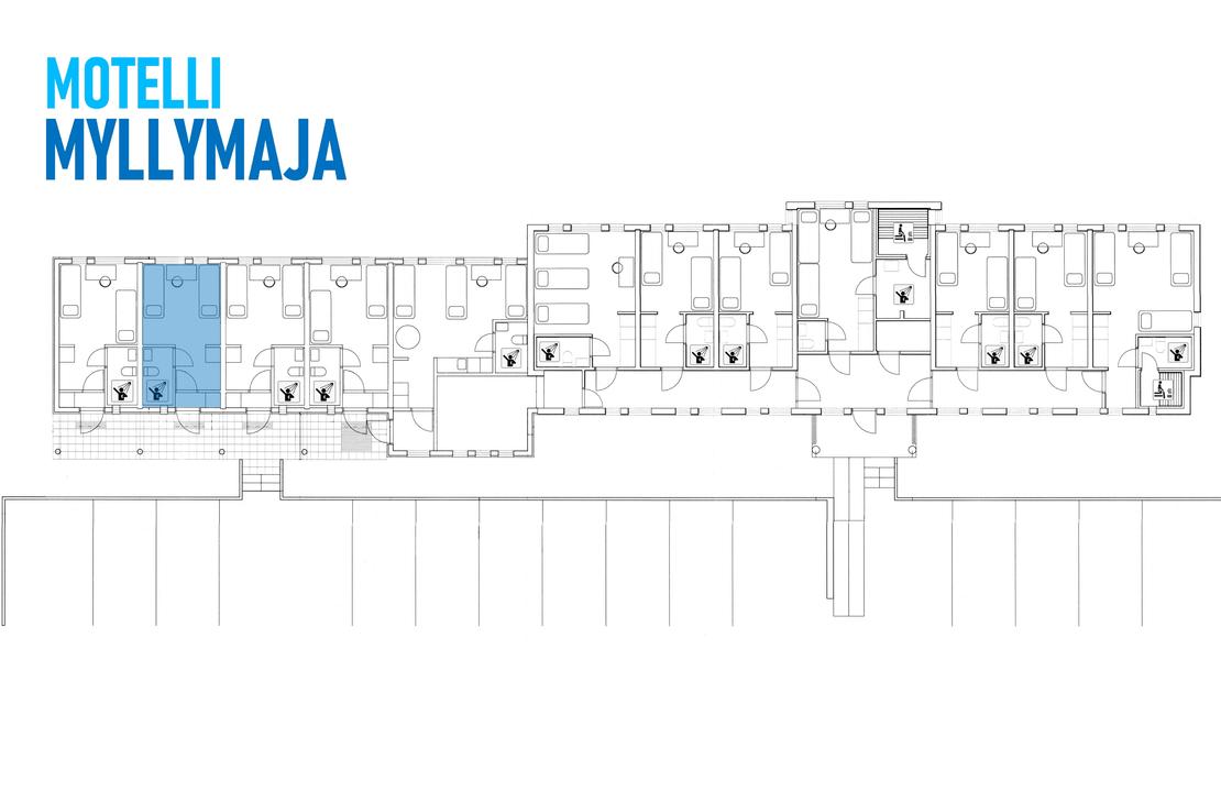 2 person room, entrance through hallway, bathroom + shower. Room has 2 separated beds, desk, TV, microwave and...