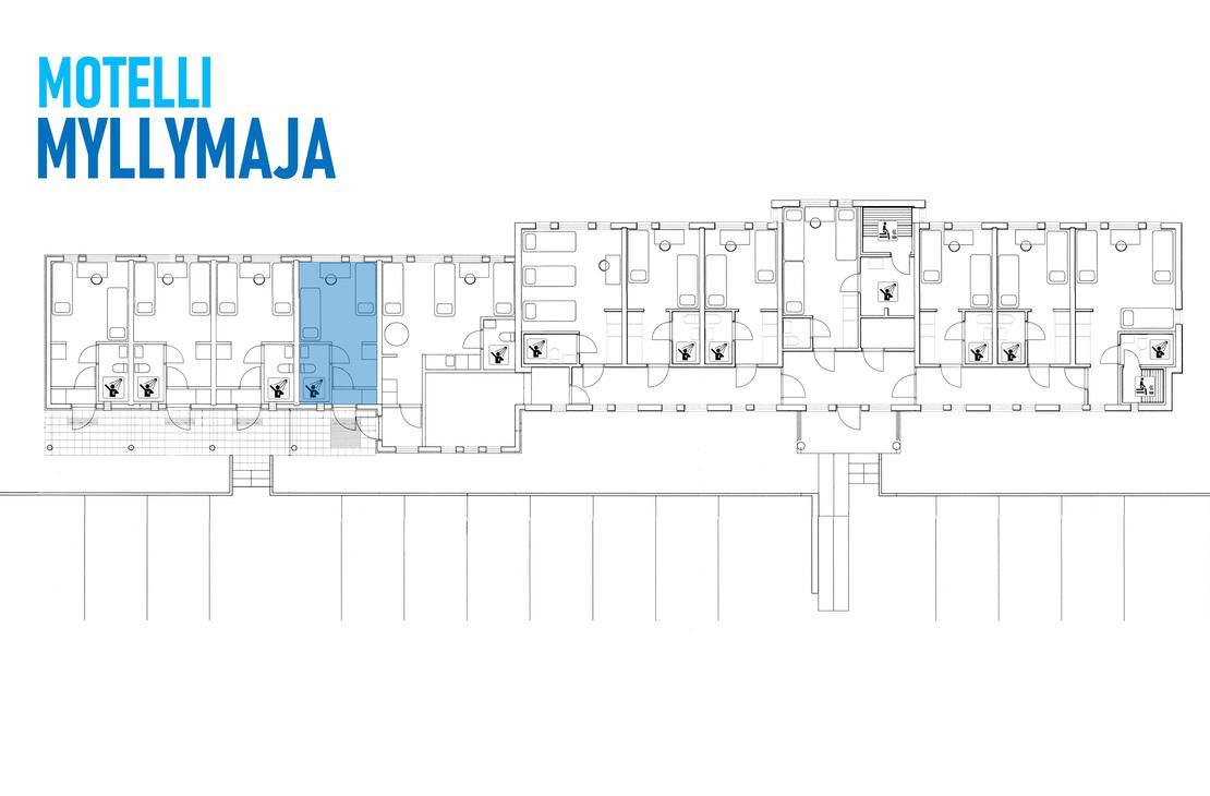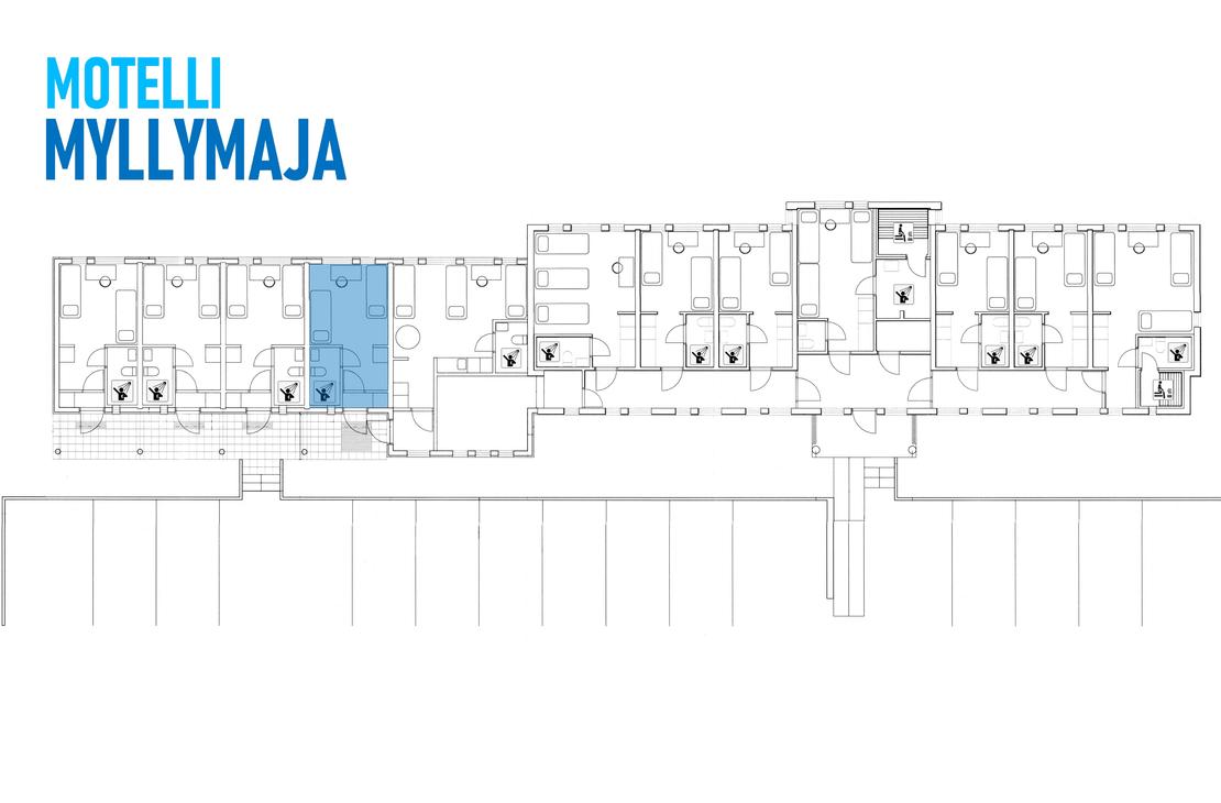 3 person room, entrance through hallway, bathroom + shower with own sauna. Room has 3 separated beds, desk,...